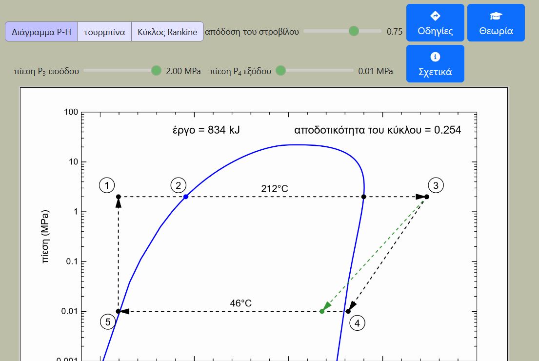 Δυναμική οπτική αναπαράσταση θερμοδυναμικών διεργασιών. Στόχος του αντικειμένου είναι να εξοικειωθεί ο χρήστης με τις τρεις θερμοδυναμικές μεταβολές