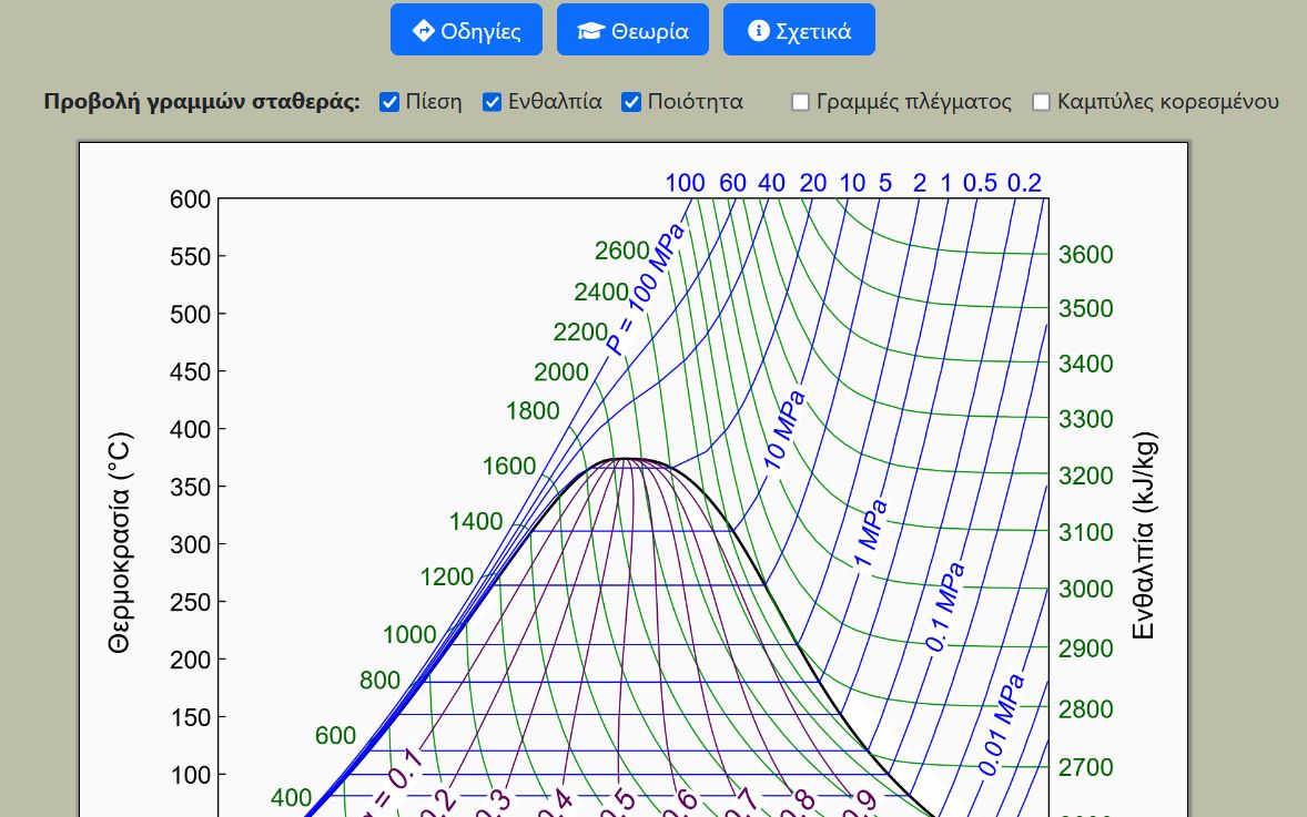Διάγραμμα Πίεσης-Ενθαλπίας για το Νερό