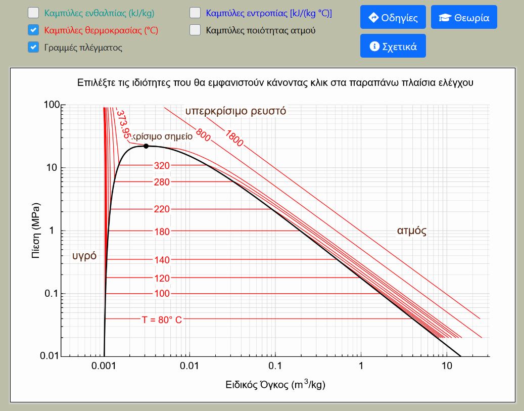 Γράφημα το οποίο δείχνει ένα διάγραμμα πίεσης-όγκου για το νερό. Σκοπός του είναι η καλύτερη κατανόηση του διαγράμματος από τους μαθητές μέσα από ένα δυναμικό περιβάλλον.