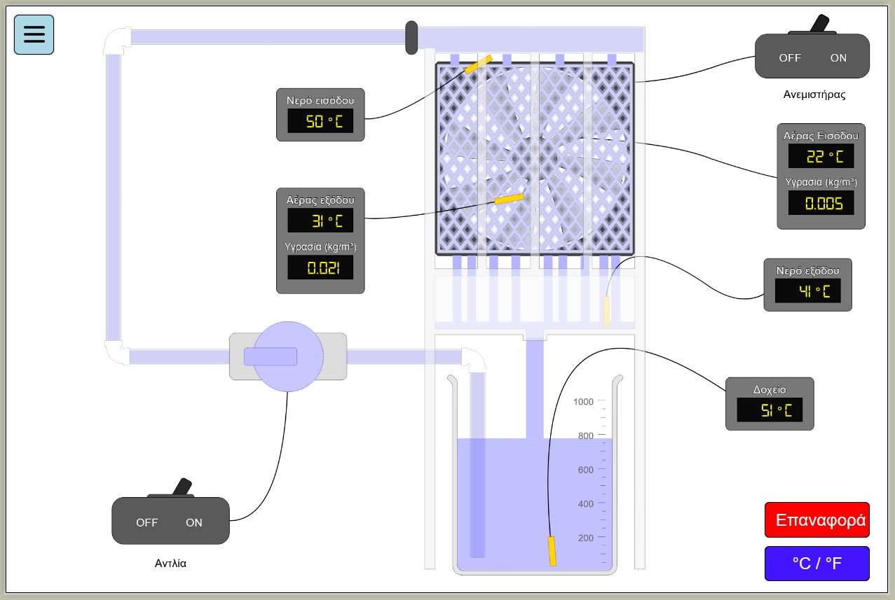 Αυτό είναι ένα εικονικό πείραμα με το οποίο ο μαθητής μπορεί να κατανοήσει την ψύξη με εξάτμιση.